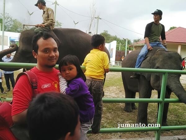 Kami juga foto-foto sebentar, lalu memenuhi keinginan Alya untuk naik Gajah.