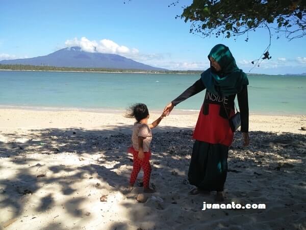 Sesuai dengan janji saya, saya pun langsung mengajak Alya berenang di Pantai Embe. Kalau tidak berenang, pasti Alya bakal ngomel ngomel sepanjang jalan.